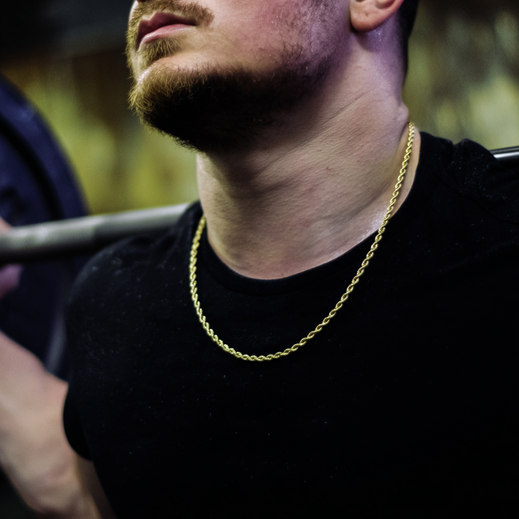 Fine 3mm gold rope with crisp texture. A versatile layer that pairs with everything.
